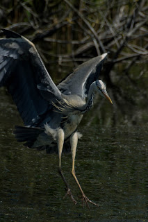 A heron was standing nice and still, as I raised my camera for a vertical shot (to fit its reflection in) it suddenly took off and flew straight at me. Had my camera been in the bog standard horizontal position I would have got some crackers. Sadly it wasnt to be...